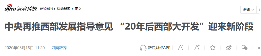 早在5月17日,中共中央、國(guó)務(wù)院印發(fā)《關(guān)于新時(shí)代推進(jìn)西部大開發(fā)形成新格局的指導(dǎo)意見》,提出貫徹新發(fā)展理念,形成大保護(hù)、大開放、高質(zhì)量發(fā)展的新格局。