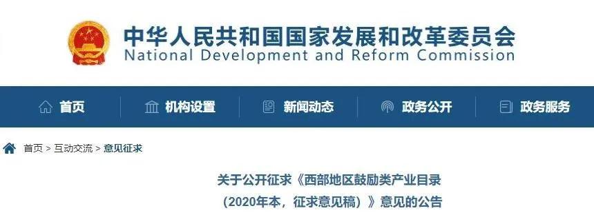 為支持西部大開發(fā),近日國(guó)家發(fā)改委就《西部地區(qū)鼓勵(lì)類產(chǎn)業(yè)目錄(2020年本,征求意見稿)》向社會(huì)公開征求意見。