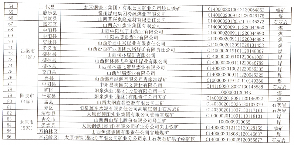 昨日,山西省自然資源廳公開《山西省2020年度綠色礦山創(chuàng)建名錄》,一共有86座礦山入選,詳細名單如下: