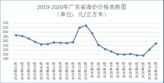 進(jìn)入11月份,建筑工程對(duì)砂的需求量呈快速上升的態(tài)勢(shì),而河砂供應(yīng)相對(duì)緊缺,海砂廣泛被市場(chǎng)所追捧,珠三角地區(qū)海砂價(jià)格出現(xiàn)持續(xù)大幅上升。據(jù)監(jiān)測(cè),11月份廣東省海砂購(gòu)進(jìn)價(jià)為每立方米250元,環(huán)比上升12.49%,同比下降21.75%。其中,珠三角地區(qū)海砂購(gòu)進(jìn)價(jià)為每立方米254元,環(huán)比上升16.02%;粵北地區(qū)海砂購(gòu)進(jìn)價(jià)為每立方米233元,環(huán)比上升1.45%。