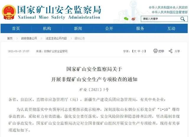 按照1月13日國務(wù)院安委辦、應(yīng)急管理部召開的歲末年初全國安全防范工作視頻會議部署,緊緊圍繞控大風險、除大隱患、防大事故,從即日起到3月底,以嚴防采空區(qū)坍塌、爆炸、火災(zāi)、透水、中毒窒息、尾礦庫潰壩等事故為重點,對所有非煤礦山進行全面檢查,集中消除一批重大事故隱患,集中曝光一批嚴重違法失信企業(yè),集中解決一批突出問題,推動企業(yè)落實主體責任,消除監(jiān)管盲區(qū)漏洞,堅決有效防范和遏制重特大事故,確保今年工作開好局起好步。