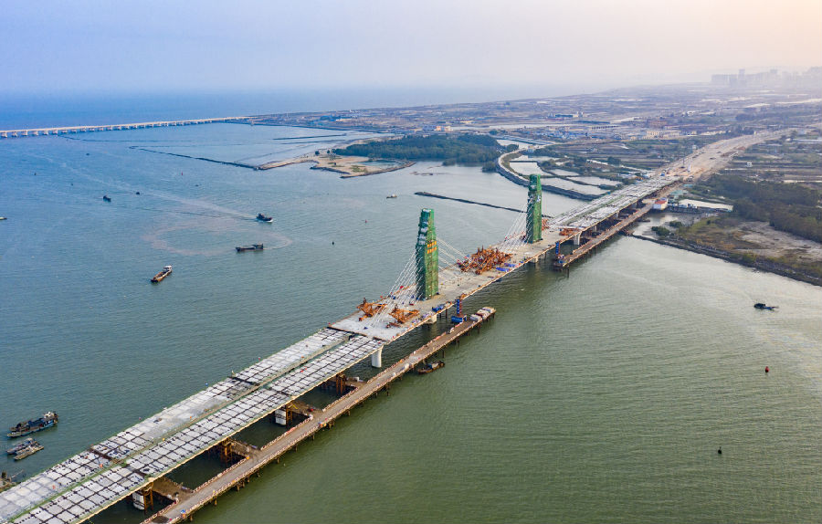 中陽(yáng)大道是2021年汕頭亞洲青年運(yùn)動(dòng)會(huì)交通要道之一,起于新津河橋東岸,終至蓮鳳路,全長(zhǎng)17.85公里。中砂大橋作為中陽(yáng)大道的控制性工程,西接龍湖區(qū),東連澄海區(qū),全長(zhǎng)1325米,主跨180米,采用雙塔雙索面斜拉橋設(shè)計(jì)。項(xiàng)目建成后,將為亞青會(huì)連通市區(qū)提供快速通道,對(duì)加強(qiáng)汕頭東海岸新城與中心城區(qū)的交通聯(lián)系,拉動(dòng)片區(qū)經(jīng)濟(jì)社會(huì)發(fā)展具有重要意義。