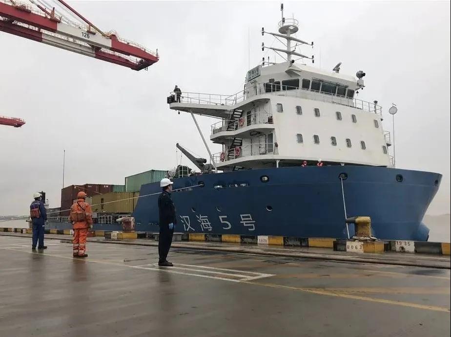 4月19日,伴隨著汽笛長鳴,由湖北建造的全國內(nèi)河最先進、裝載量最大的集裝箱船“漢海5號”輪返航歸來,平穩(wěn)靠泊武漢港陽邏港區(qū)二期碼頭。“漢海5號”輪自2月底首航以來,運輸量穩(wěn)步增長。