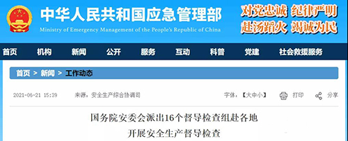 為認(rèn)真貫徹落實(shí)習(xí)近平總書記對(duì)安全生產(chǎn)工作的重要指示精神,按照李克強(qiáng)總理等中央領(lǐng)導(dǎo)同志批示要求,扎實(shí)深入排查治理重點(diǎn)行業(yè)領(lǐng)域重大風(fēng)險(xiǎn)隱患,為建黨100周年創(chuàng)造安全穩(wěn)定環(huán)境,根據(jù)全國(guó)安全生產(chǎn)電視電話會(huì)議部署,國(guó)務(wù)院安委會(huì)派出由有關(guān)成員單位負(fù)責(zé)同志帶隊(duì)的16個(gè)督導(dǎo)檢查組,從即日起至7月上旬對(duì)全國(guó)31個(gè)?。▍^(qū)、市)及新疆生產(chǎn)建設(shè)兵團(tuán)開展安全生產(chǎn)重點(diǎn)督導(dǎo)檢查工作。