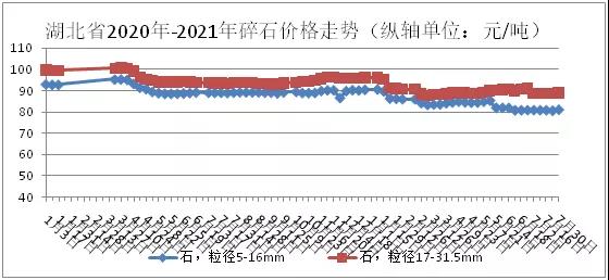 7月份,湖北省大部分地區(qū)受降水及高溫影響,市場總體對建筑原料需求較弱,價格下行。