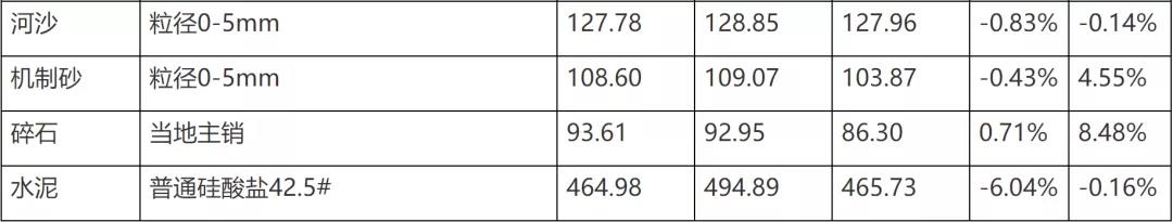 近日,江西發(fā)改委發(fā)布了江西省7月份江西市場價格形勢分析報告,工業(yè)生產(chǎn)資料中的鋼材、稀土價格上漲,水泥價格下跌,砂石價格較為平穩(wěn)。其中,河砂(粒徑0-5mm)、機制砂(粒徑0-5mm)、碎石(當(dāng)?shù)刂麂N)均價為127.78元/噸、108.60元/噸、93.61元/噸。