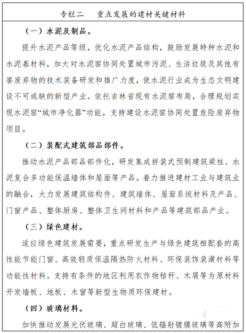 近日,吉林工信廳發(fā)布了《冶金建材產(chǎn)業(yè)發(fā)展“十四五”規(guī)劃的通知》,其中建材產(chǎn)業(yè)重點(diǎn)任務(wù)為: