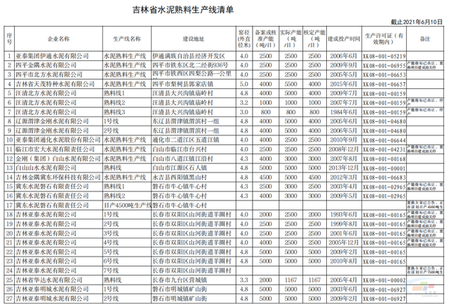 據(jù)吉林工信廳日前發(fā)布的水泥熟料生產(chǎn)線清單顯示,截止到2021年6月,吉林日產(chǎn)2500以下水泥熟料線有4條,其中,兩條熟料線產(chǎn)能指標(biāo)已出讓,處于停產(chǎn)狀態(tài);一條熟料線產(chǎn)能指標(biāo)已出讓,置換項(xiàng)目建成前關(guān)停。