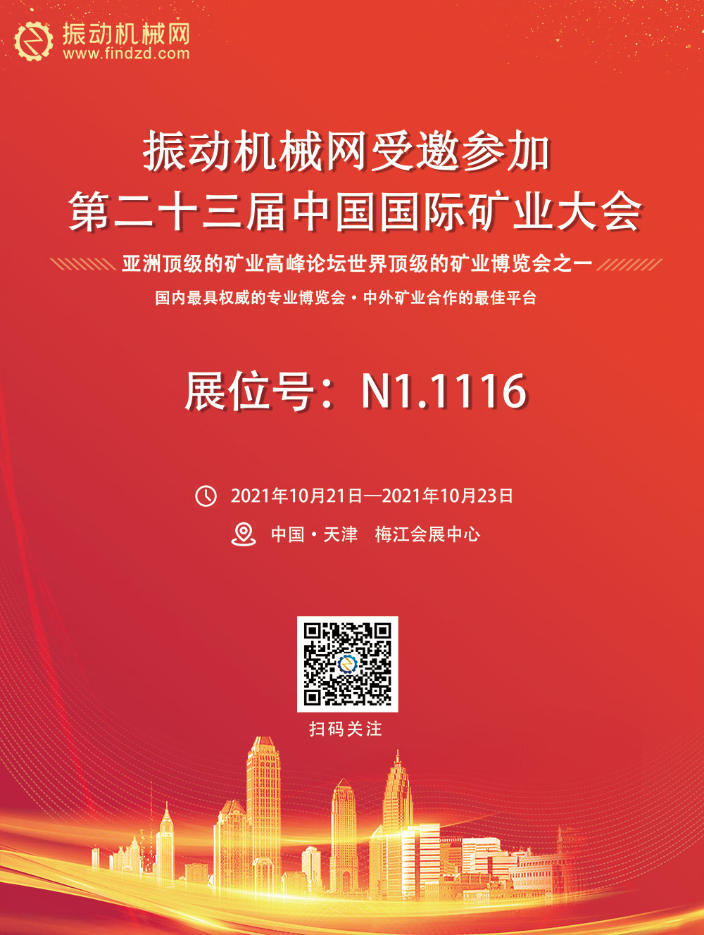 由中華人民共和國自然資源部、天津市人民政府指導,中國礦業(yè)聯(lián)合會主辦的2021(第二十三屆)中國國際礦業(yè)大會將于10月21日-23日在天津梅江會展中心以“線上+線下”相結(jié)合的方式舉行。振動機械網(wǎng)受邀出席參加,展位號N1.1116。歡迎新老客戶蒞臨參觀指導交流!
