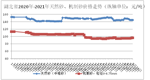 監(jiān)測數(shù)據(jù)顯示:9月份,天然砂(中粗砂)、機(jī)制砂均價分別為145.41元/噸、95.34元/噸,環(huán)比分別下跌1.57%和上漲0.52%;同比分別上漲1.20%和下跌9.70%。具體價格走勢情況如下圖: