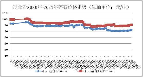 監(jiān)測數(shù)據(jù)顯示:9月份,碎石(粒徑5-16mm)、碎石(粒徑17-31.5mm)均價分別為81.82元/噸、89.91元/噸,環(huán)比分別上漲0.81%、0.81%;同比分別下跌8.15%、3.56%。具體價格走勢情況如下圖: