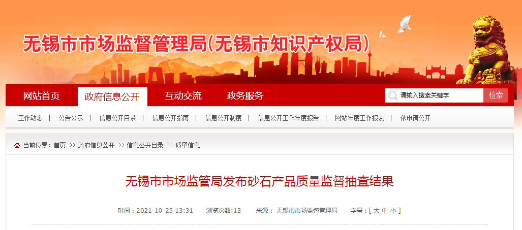 江蘇省無錫市市場監(jiān)管局抽查10批次砂石產(chǎn)品合格率為80%
