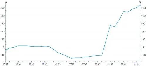 從10月份來看,采礦業(yè)、原材料制造業(yè)利潤增長明顯加快。10月份,在生產(chǎn)資料價格高位運行拉動下,采礦業(yè)、原材料制造業(yè)利潤同比分別增長2.81倍、56.1%,均明顯高于工業(yè)平均水平,增速較上月分別加快51.7、18.4個百分點。分行業(yè)看,隨著能源保供政策措施的落實,10月份煤炭產(chǎn)量較快增加,帶動煤炭行業(yè)利潤同比增長4.38倍,增速較上月加快69.6個百分點;有色、化工行業(yè)利潤分別增長1.68倍、63.9%,增速較上月分別加快71.3、21.7個百分點;鋼鐵行業(yè)利潤增長57.3%,保持快速增長。