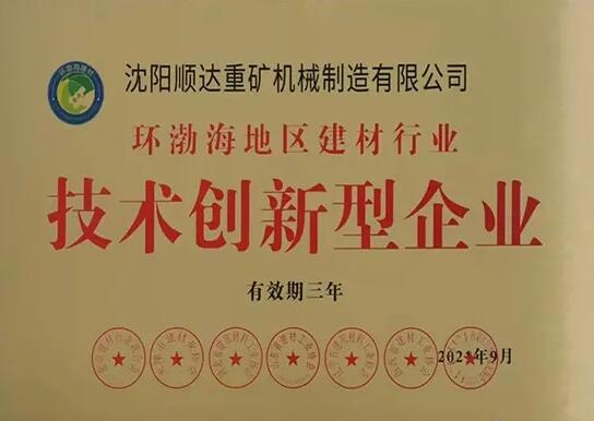 近日,沈陽順達重礦機械制造有限公司(以下簡稱為“順達重礦”)榮獲“環(huán)渤海地區(qū)建材行業(yè)技術創(chuàng)新型企業(yè)”稱號。這次評定是對順達重礦的綜合實力、技術創(chuàng)新能力、科研能力的充分肯定,也意味著順達重礦在提升研發(fā)創(chuàng)新能力的道路上持續(xù)邁進。