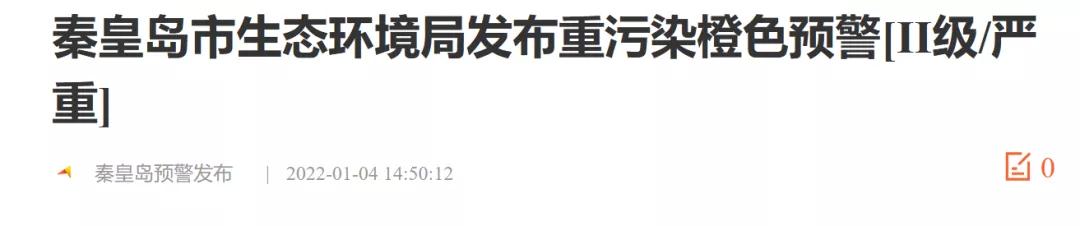自2022年1月3日12時(shí)全市啟動(dòng)重污染天氣橙色預(yù)警,具體解除時(shí)間另行通知。