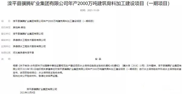 據(jù)悉,灤平縣驥騰礦業(yè)集團(tuán)有限公司年產(chǎn)2000萬噸建筑骨料加工建設(shè)項(xiàng)目建設(shè)地點(diǎn)位于河北省承德市,為選廠改擴(kuò)建。破碎系統(tǒng)擬建設(shè)年產(chǎn)2000萬噸建筑骨料加工建設(shè)項(xiàng)目,其中一期建設(shè)年產(chǎn)1000萬噸建筑骨料加工破碎站1座,二期建設(shè)年產(chǎn)1000萬噸建筑骨料加工破碎站1座,總投資29412萬元。