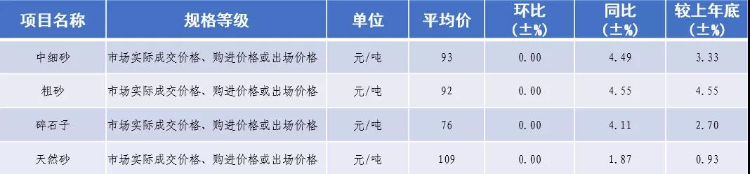 從四川省發(fā)改委了解,12月四川省砂石價格中細(xì)砂93元/噸,粗砂均價91元/噸,碎石子均價75元/噸,天然砂均價107元/噸,砂石價格較11月有整體微降,價格維穩(wěn)。