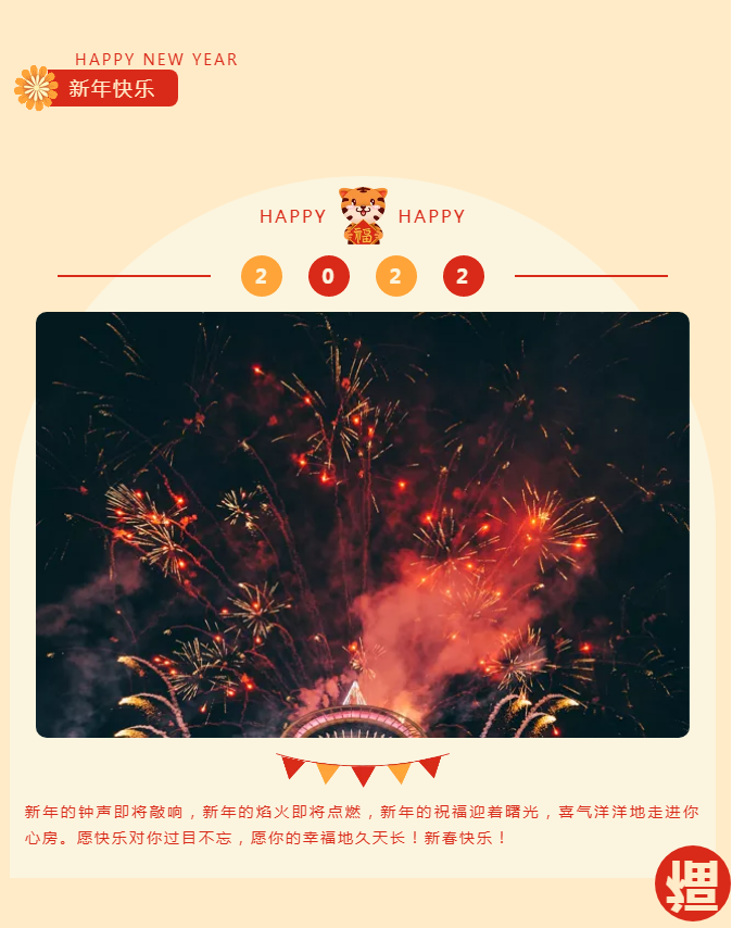 新年新歲,愿您好運(yùn)不斷喜事連; 虎年納福,愿您虎虎生威萬(wàn)事遂; 恭祝新年好!