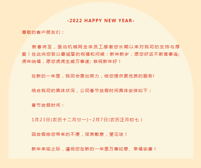 振動(dòng)機(jī)械網(wǎng) 春節(jié) 放假通知 ”更多相關(guān)資訊
