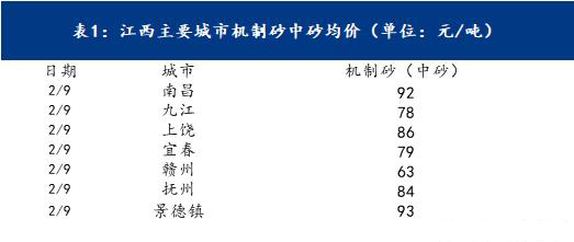 據(jù)匯總,截止2月9日,江西主要城市機(jī)制砂中砂,當(dāng)?shù)厥袌鰣?bào)價在63-93元/噸,整體呈現(xiàn)北強(qiáng)南弱的局面。