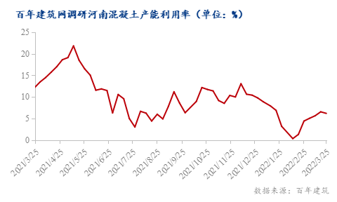 據(jù)百年建筑網(wǎng)統(tǒng)計(jì),此輪河南省混凝土產(chǎn)能利用率較上周有所下降。攪拌站反饋,疫情防控期間,原材料運(yùn)輸管控嚴(yán)格,尤其是跨省市運(yùn)輸砂石等原材料,混凝土出貨量下滑,對(duì)于砂石骨料的需求量也未有提升。