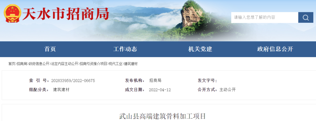 近日,甘肅天水市招商局發(fā)布武山縣高端建筑骨料加工項(xiàng)目招商公告,公告提出:招商投資5億元,建設(shè)年產(chǎn)1000萬噸高端骨料生產(chǎn)線,通過公路運(yùn)輸或鐵路運(yùn)輸方式輻射周邊市縣和鄰近省份大城市。