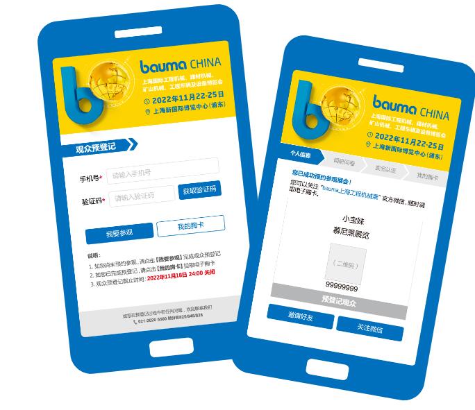 請截圖保存或至bauma CHINA微信菜單【我要參觀】→【我的胸卡】隨時(shí)獲取電子胸卡。