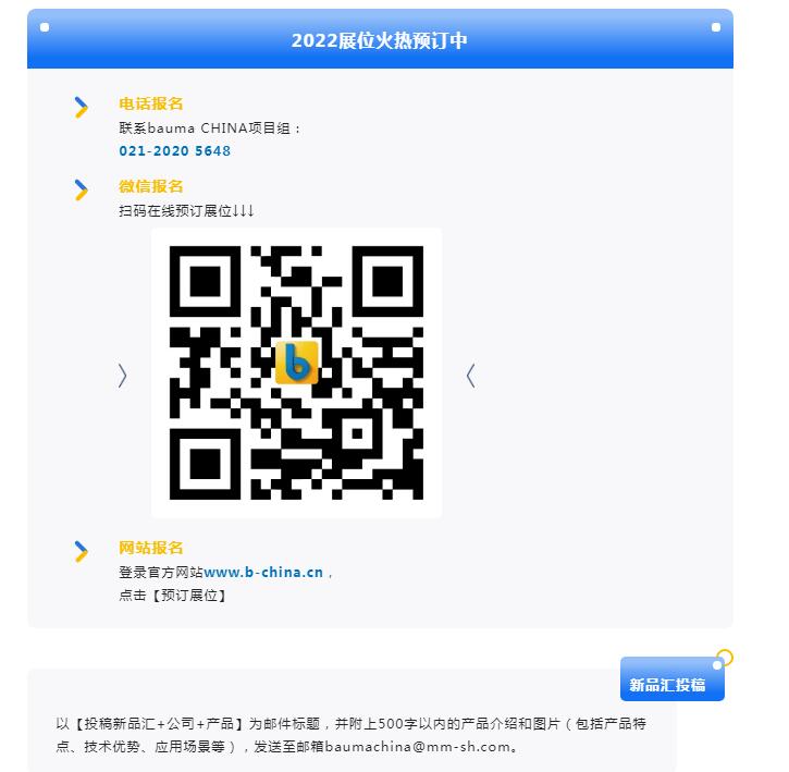 bauma CHINA 2022展位預(yù)訂已進(jìn)入最后沖刺階段,機(jī)不可失,預(yù)訂從速!