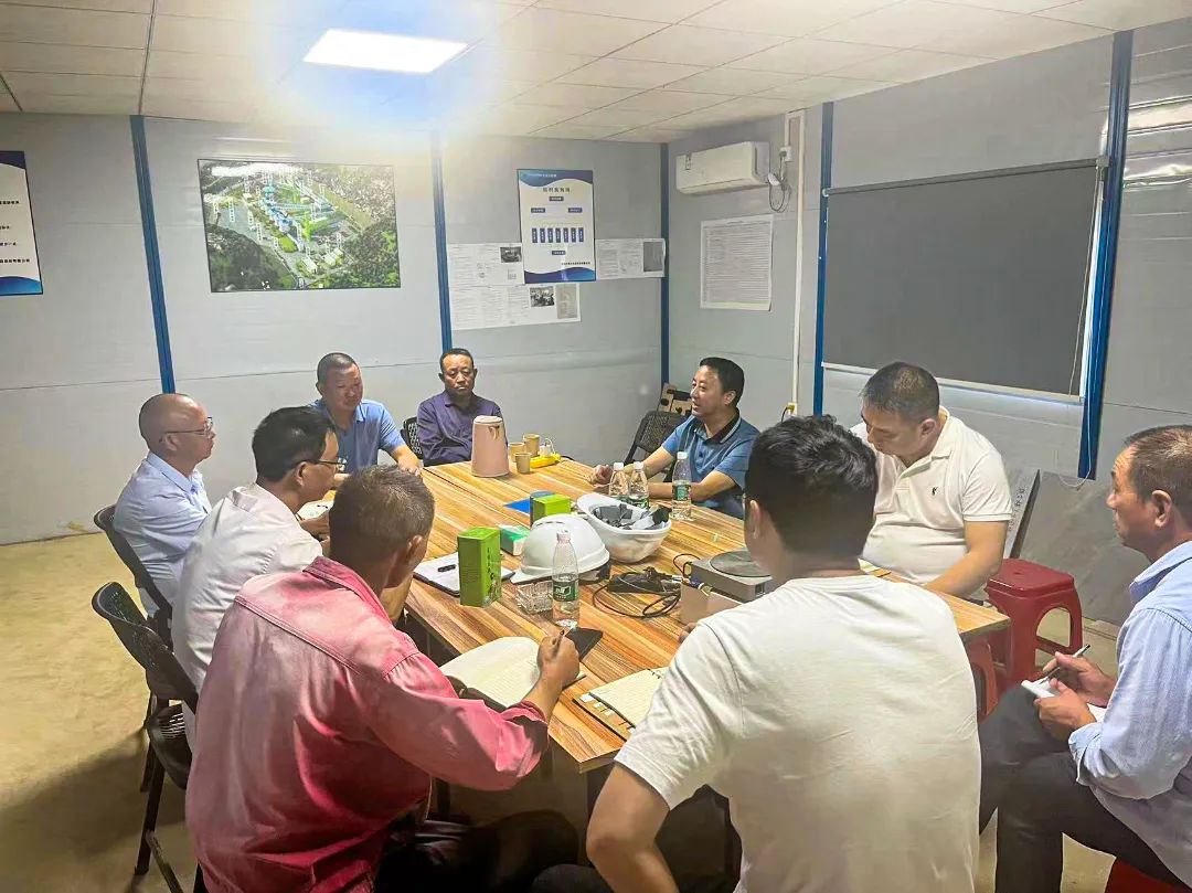 項(xiàng)目視察完畢后在項(xiàng)目部召開了項(xiàng)目工作推進(jìn)會,董事長聽取了項(xiàng)目主要負(fù)責(zé)人和施工方負(fù)責(zé)人對影響項(xiàng)目進(jìn)度的有關(guān)困難和問題的匯報,與會人員對項(xiàng)目建設(shè)中存在的問題提出了意見和建議,明確了落實(shí)解決問題的責(zé)任部門和具體方案。
