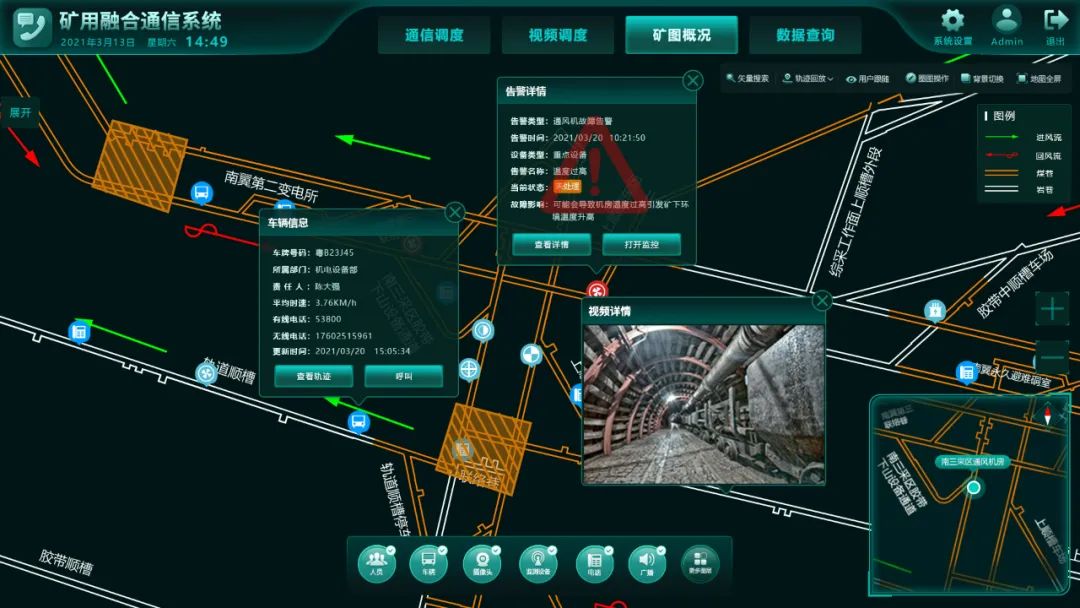 針對神木嘉元煤礦現(xiàn)狀,震有科技利用GIS技術(shù)打造的礦用融合通信系統(tǒng)突破了單一指揮調(diào)度功能模式,將煤礦有線調(diào)度系統(tǒng)、 無線通信系統(tǒng)、人員定位系統(tǒng)、 應急廣播系統(tǒng)、安全監(jiān)測系統(tǒng)、視頻監(jiān)控系統(tǒng)、車輛管理、設備監(jiān)測等系統(tǒng)進行有機結(jié)合,以“一圖一平臺”的呈現(xiàn)方式實現(xiàn)了統(tǒng)一接入、統(tǒng)一語音調(diào)度、統(tǒng)一點位信息查詢。