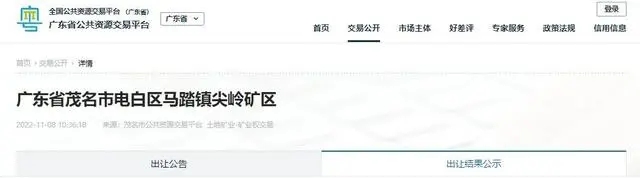 1、茂名市電白區(qū)馬踏鎮(zhèn)尖嶺礦:競得人城投(茂名電白)礦產(chǎn)開發(fā)有限公司,成交價:7200萬。出讓資源儲量:保有礦石儲量約1583萬m。礦山設計生產(chǎn)規(guī)模:30萬m/年。采礦權出讓期限:28年。