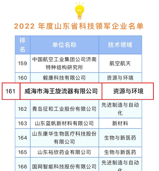 日前,在山東省科技廳指導(dǎo)下,山東省科學(xué)院情報(bào)研究所、山東省創(chuàng)新發(fā)展研究院在濟(jì)南聯(lián)合舉行2022年度山東省科技領(lǐng)軍企業(yè)和首批科技小巨人企業(yè)名單發(fā)布會(huì),向社會(huì)公布了200家科技領(lǐng)軍企業(yè)名單和600家科技小巨人企業(yè)名單,威海市海王旋流器有限公司(下稱海王旋流器)成功入選科技領(lǐng)軍企業(yè)名單。