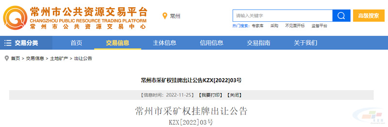 9、競得人應(yīng)當(dāng)按照《采礦權(quán)網(wǎng)上交易競得通知書》的要求在常州市公共資源交易中心與出讓人簽訂《采礦權(quán)出讓成交確認(rèn)書》。