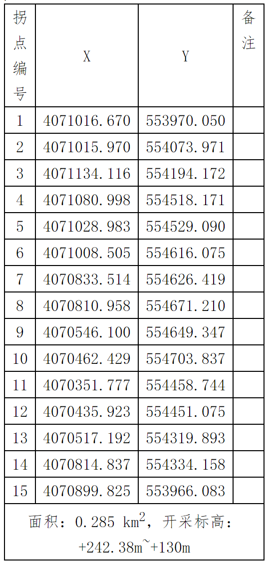5、開(kāi)采范圍:拐點(diǎn)坐標(biāo)(2000國(guó)家大地坐標(biāo)系)
