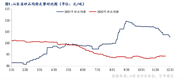 2022年12月9日至12月16日,上周山東砂石均價94.3元/噸,周環(huán)比上漲0.12%,同比下跌9%。