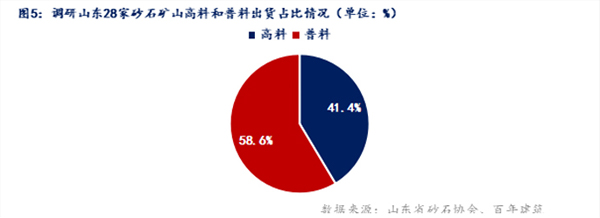 據調研28家大型砂石礦山企業(yè),高料和普料占比為41.4%:58.6%,高標料占比持續(xù)回升;上周高料總量約73.1萬噸,周環(huán)比增加3%;普料總量約103.4萬噸,周環(huán)比持平;重點項目趕工期采購砂石料用量增加,預計下周山東普料、高料需求總量或將持平。