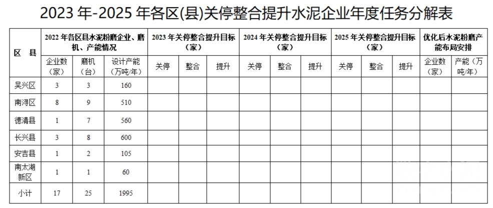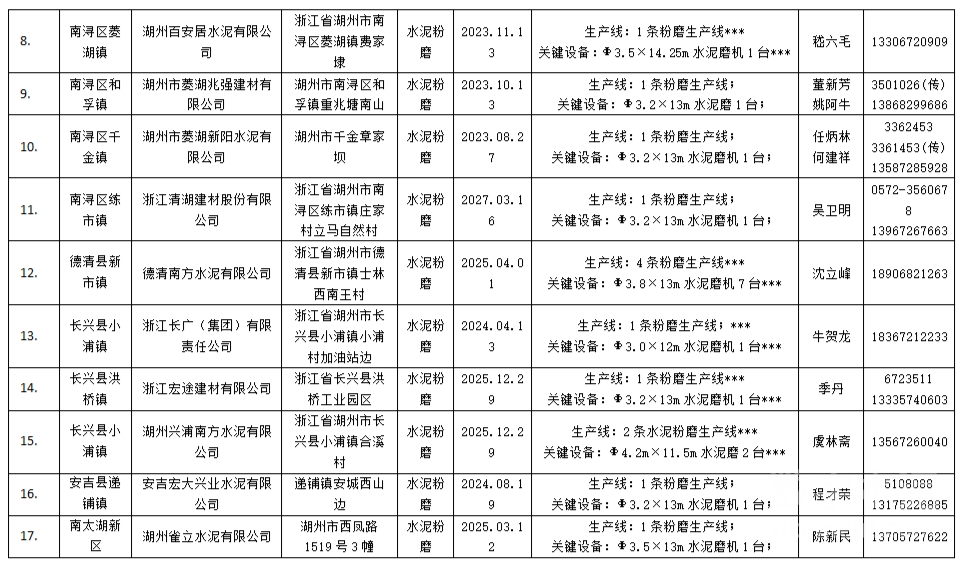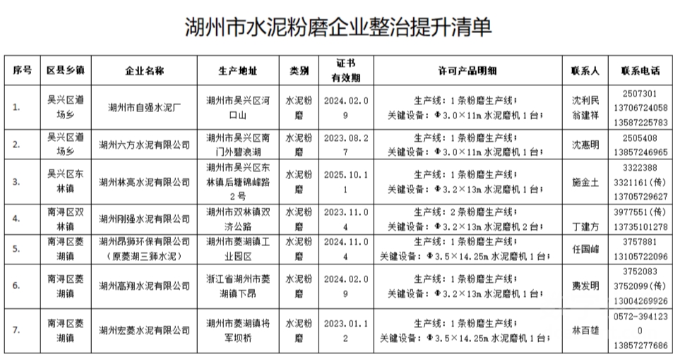 以下為湖州市水泥粉磨企業(yè)整治提升清單: