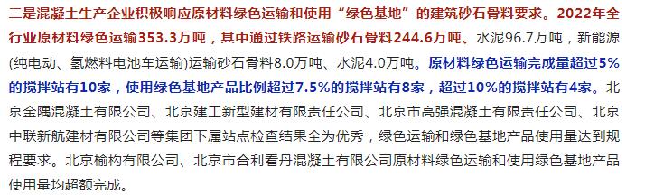 二是個別混凝土攪拌站對原材料綠色運輸和使用“綠色基地”產品認識不足,使用量有待進一步提高。