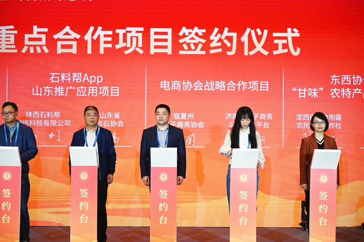 在第三屆儒商大會(huì)“電商協(xié)同助力黃河流域鄉(xiāng)村振興論壇”上,山東省砂石協(xié)會(huì)秘書長(zhǎng)宋瑋與陜西石料幫網(wǎng)絡(luò)科技有限公司董事長(zhǎng)郭利簽署戰(zhàn)略合作協(xié)議,成為第三屆儒商大會(huì)上耀眼的“建材風(fēng)采”。