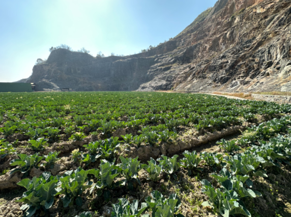 圖為鳳凰山北側(cè)山脈復(fù)耕地塊種植花菜
