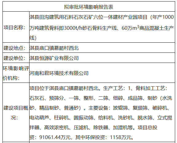 年產(chǎn)1000萬(wàn)噸砂石!淇縣恒源礦業(yè)田溝建材產(chǎn)業(yè)園項(xiàng)目環(huán)評(píng)獲批