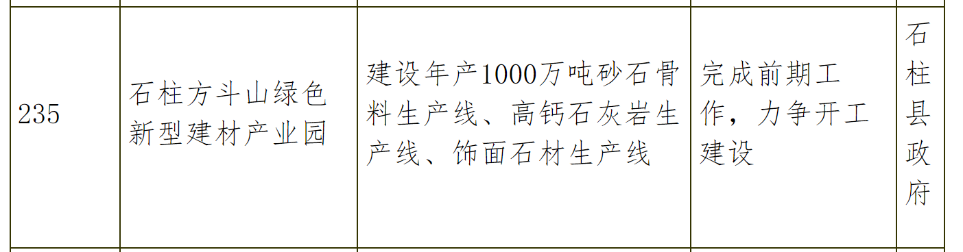 主要建設內容及規(guī)模:建設年產1000萬噸砂石骨料生產線、高鈣石灰?guī)r生產線、飾面石材生產線