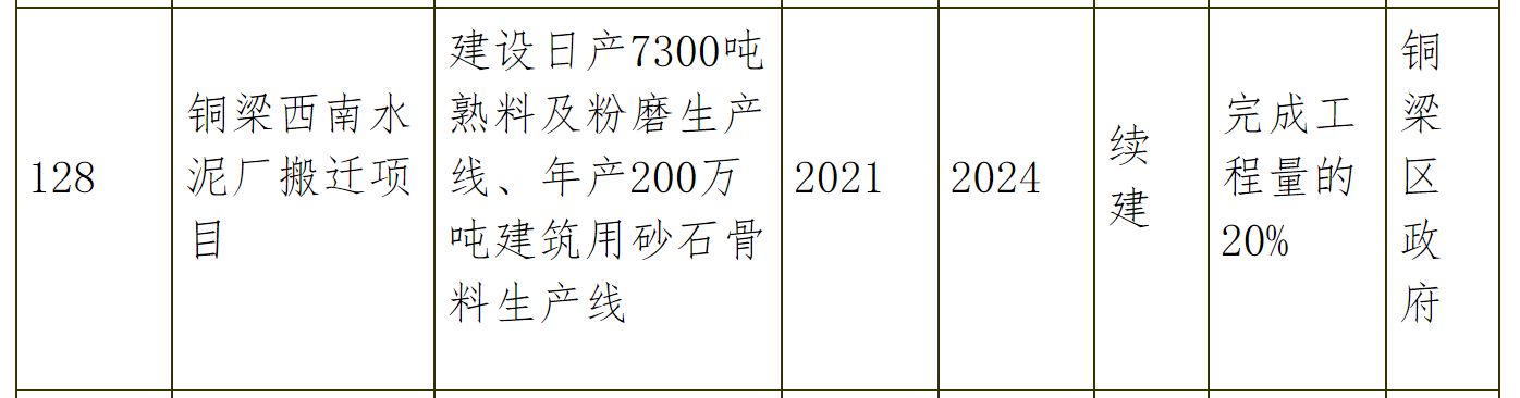 1、銅梁西南水泥廠搬遷項目