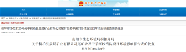 近日,河南省南陽市桐柏縣一年產(chǎn)300萬噸建筑用砂項(xiàng)目環(huán)評(píng)獲批。據(jù)悉,該項(xiàng)目將建設(shè)兩條洗砂生產(chǎn)線,生產(chǎn)成品為建筑用砂,建設(shè)單位為桐柏縣晨晨礦業(yè)有限公司。