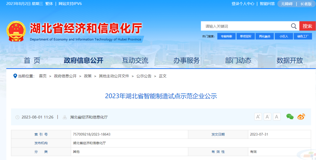 按照《省經(jīng)信廳辦公室關(guān)于組織開(kāi)展2023年湖北省智能制造試點(diǎn)示范企業(yè)申報(bào)工作的通知》要求,經(jīng)各市推薦、專家評(píng)審、征求相關(guān)廳(局)意見(jiàn)等程序,現(xiàn)將2023年湖北省智能制造試點(diǎn)示范企業(yè)名單予以公示(見(jiàn)附件),如有異議,請(qǐng)?jiān)诠酒趦?nèi)以書(shū)面形式反饋省經(jīng)信廳裝備工業(yè)處。