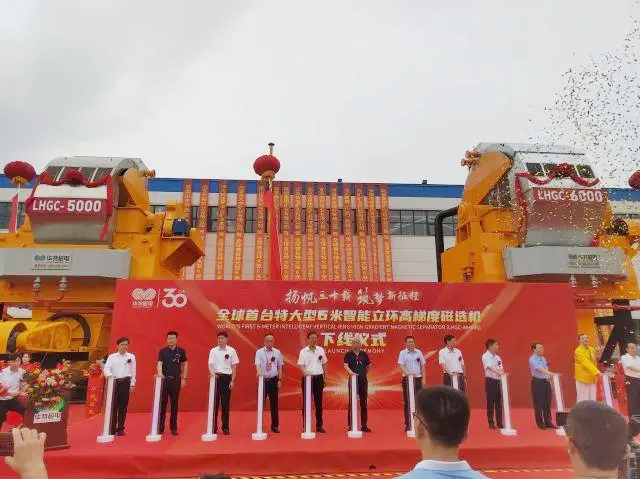 8月5日,由山東華特磁電科技股份有限公司自主研制的全球第一臺(tái)最大6米直徑智能立環(huán)高梯度磁選機(jī)在臨朐縣下線。