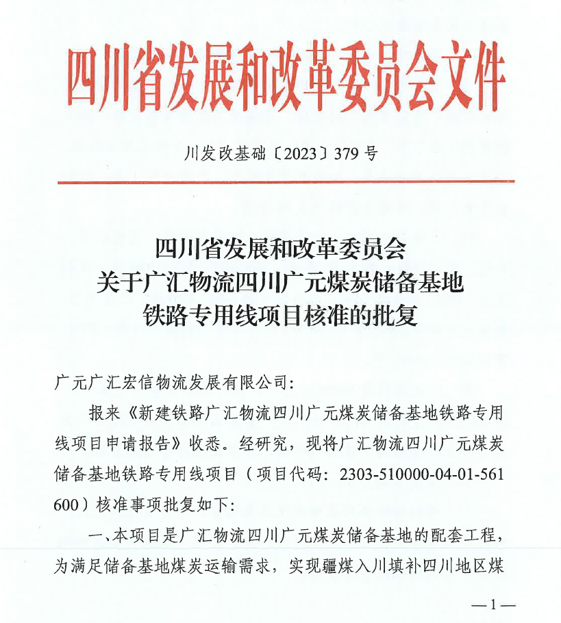 近日,廣元廣匯宏信物流發(fā)展有限公司廣元綜合能源物流基地獲得四川省發(fā)改委關(guān)于廣匯物流四川廣元煤炭儲備基地鐵路專用線項目核準的批復(fù)。   自2022年7月15日簽訂投資合作協(xié)議以來,..