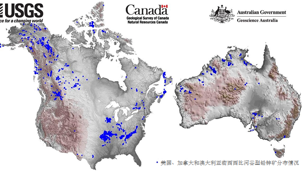 這些數(shù)據(jù)層也能用于人工智能分析技術(shù)比如機(jī)器學(xué)習(xí)。由加拿大地質(zhì)調(diào)查局主導(dǎo)的關(guān)鍵礦產(chǎn)填圖計(jì)劃(CMMI, Critical Minerals Mapping Initiative)團(tuán)隊(duì)已經(jīng)利用這些數(shù)據(jù)繪制澳大利亞、加拿大和美國(guó)某種鋅礦的潛力圖,除鋅外,這些礦床還含有鎵和鍺。