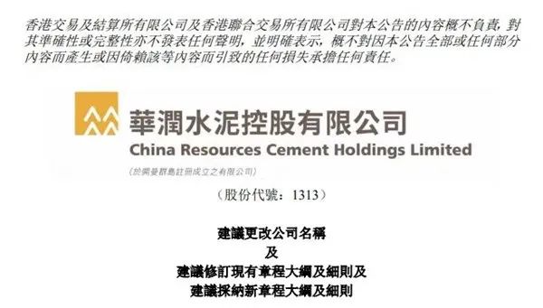 華潤水泥,要改名了。