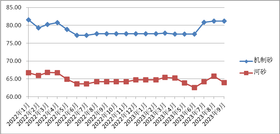 三季度機制砂81元/噸環(huán)比上漲3.85%!9月份河砂64元/噸環(huán)比下降2.77%